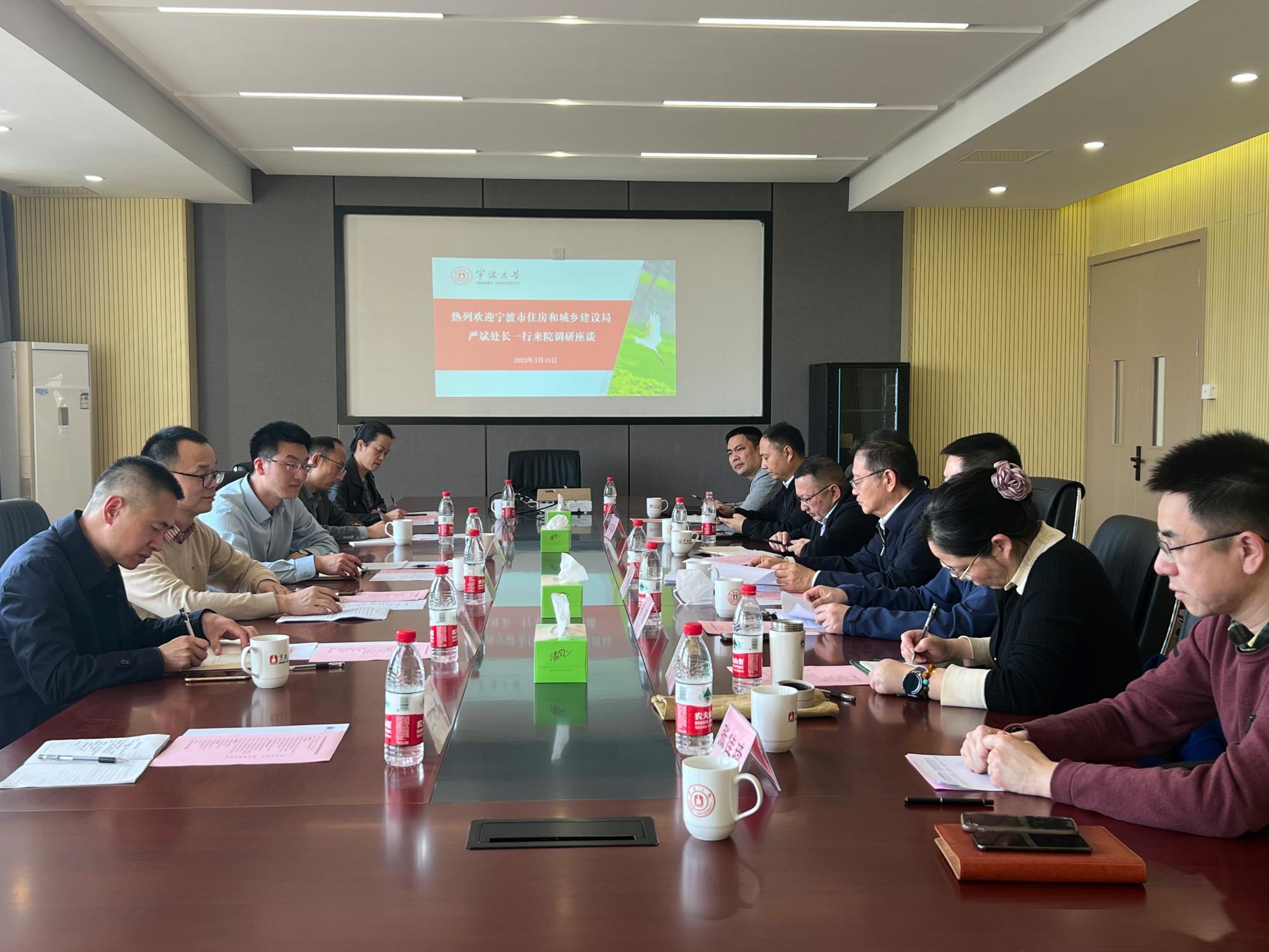3月15日下午,宁波市住房和城乡建设局党组成员、组织人事处处长严斌、建筑市场处处长孙列一行来蜜桃视频 调研交流,学院党委书记李加林、副院长章子华、土木工程系主任贺智敏及相关教师代表、部门负责人参加座谈,会议由章子华主持。