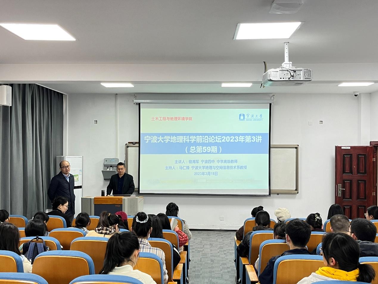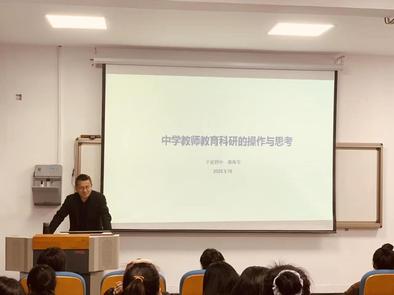 3月18日上午,蜜桃视频 地理科学前沿论坛2023年第3讲在载物楼202举行。宁波市骨干教师、中学高级教师、宁波四中德育处副主任骆海军老师应邀作了题为《中学教师教育科研的操作与思考》的讲座。本次报告由蜜桃视频 地理与空间信息技术系马仁锋教授主持。