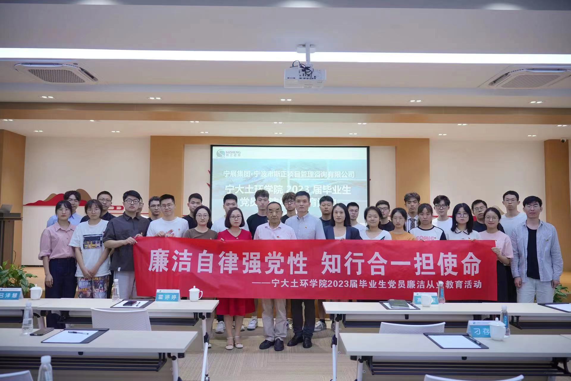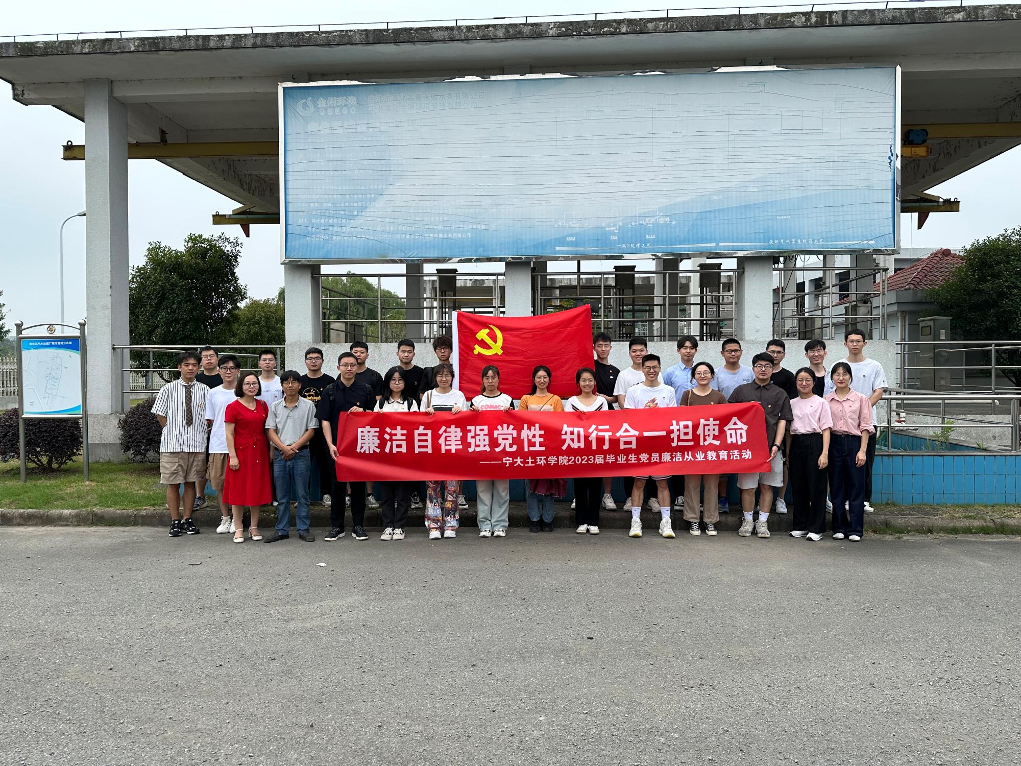 6月16日,蜜桃视频 党委、纪委组织土木系、环境系30余名2023届毕业生党员代表、教师党员代表赴宁波市斯正项目管理咨询有限公司、奉化污水处理厂,开展“廉洁自律强党性,知行合一担使命”主题教育暨廉洁从业教育活动。