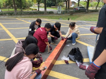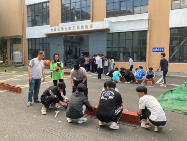 秋风送爽,首批35名本科生在蜜桃视频 土木工程实验室外空地开展了劳动实践,学生们分为4个小组,指导老师团队由贺智敏、林云、叶陈振、周晔四位老师及三位从工程单位聘请的工匠组成。