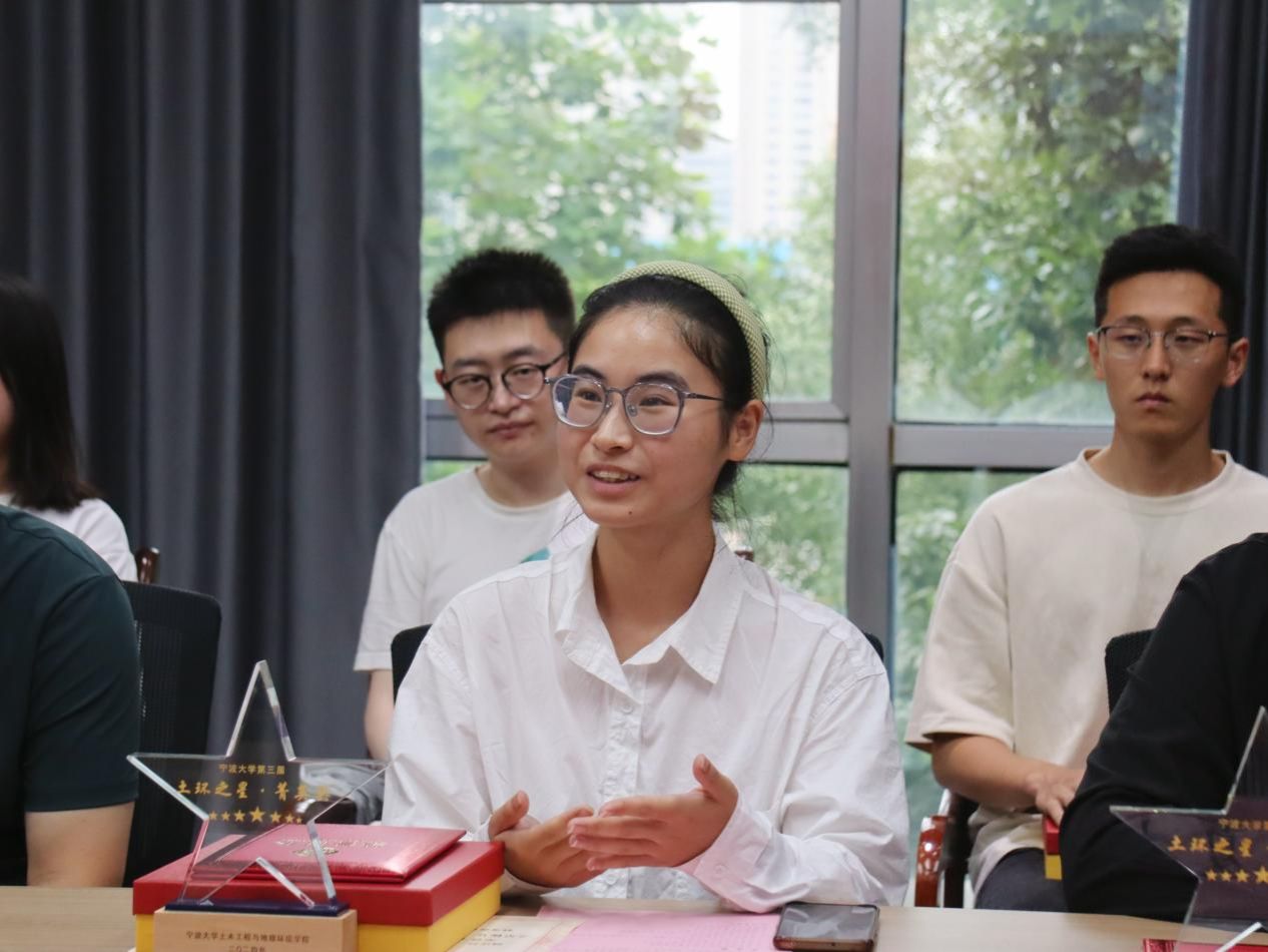 姚佳封作为本科生代表发言,她表示获得“土环之星”奖项,不仅是对同学们经济上的支持,更是精神上的激励,并对朱向东校友和其他教师领导表示真挚的感谢。崔嘉铭作为研究生代表发言,他说到:“不积跬步无以至千里,今后不论是在学习、工作,还是在生活中,我将始终铭记这份资助,保持优良的学风作风,继续努力奋斗。”