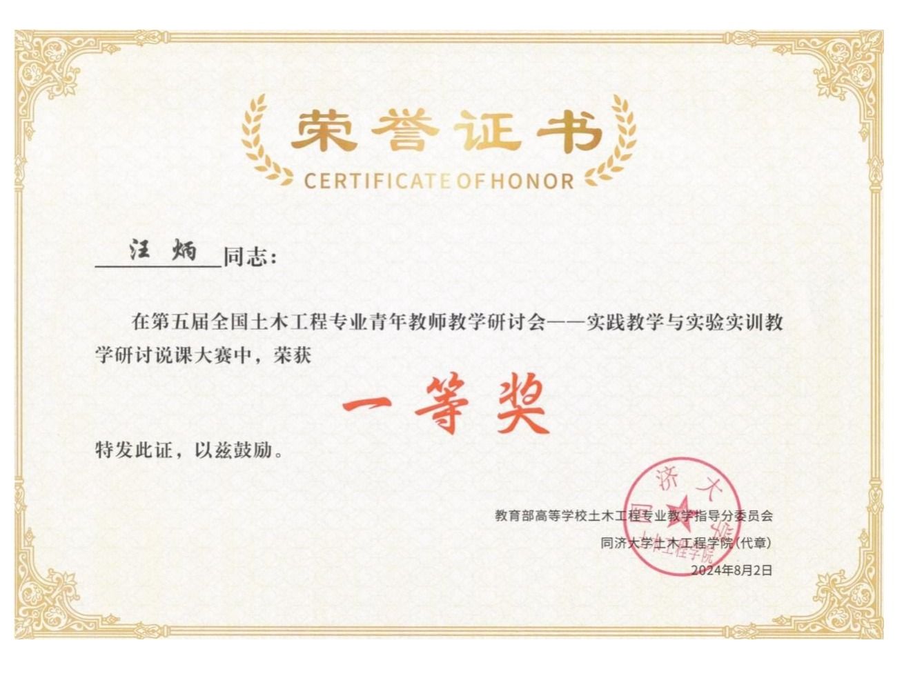 7月31日至8月2日,由教育部高等学校土木工程专业教学指导分委员会主办、昆明理工大学和中国建筑工业出版社承办的第五届全国土木工程专业青年教师教学研讨会在云南昆明举行。蜜桃视频 土木工程系教师汪炳教师获说课大赛一等奖。