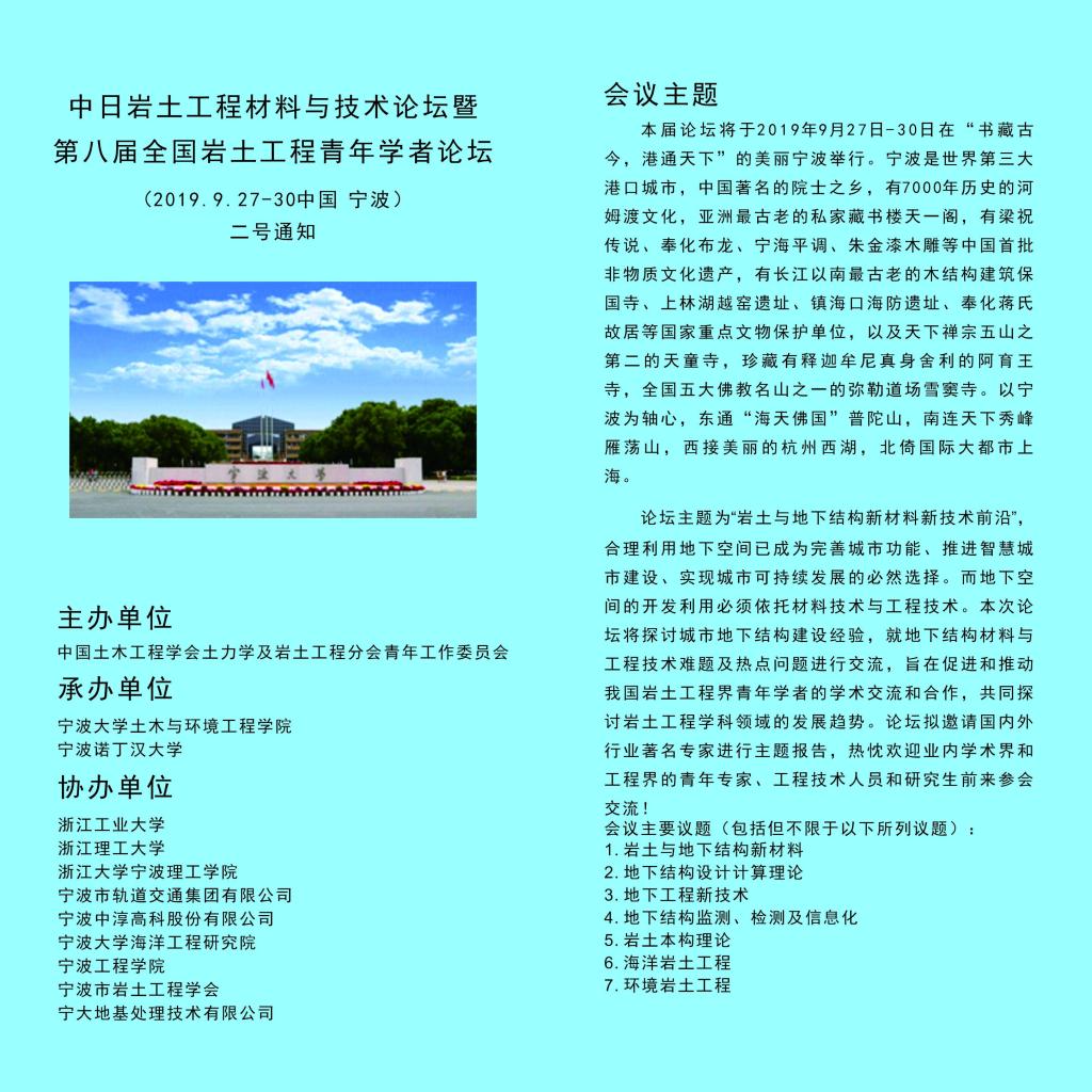 关于召开中日岩土工程材料与技术论坛暨第八届全国岩土工程青年学者论坛的蜜桃视频通知