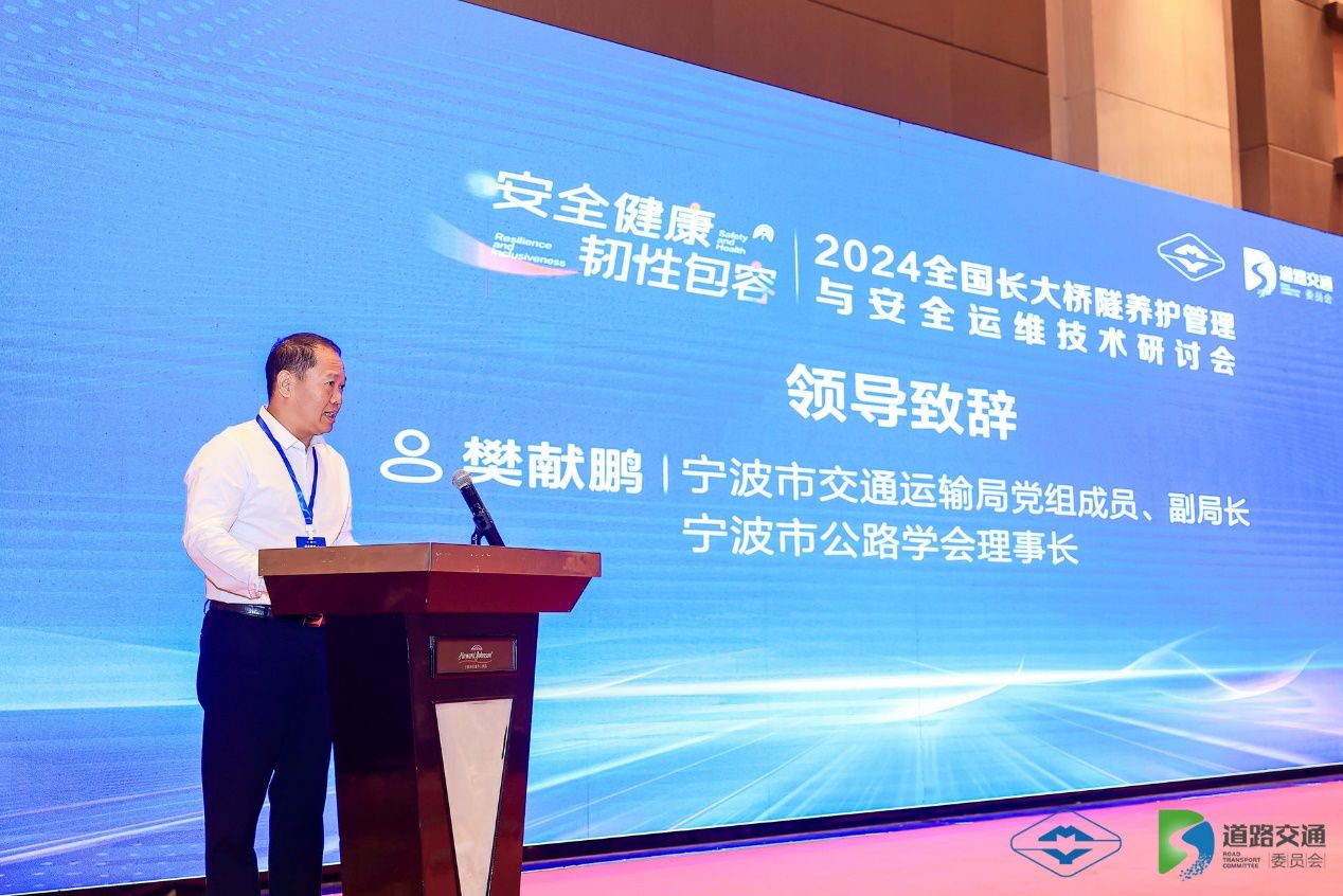 2024年10月11日,2024全国长大桥隧养护管理与安全运维技术研讨会在宁波阳光豪生酒店隆重举行。本次大会由茅以升科技教育基金会道路交通委员会、宁波市公路学会主办,宁波大学土木工程与地理环境学院参与承办,本次研讨会以“安全健康、韧性包容”为主题,旨在推动我国长大桥隧在养护管理与安全运维方面取得新的进展,为交通领域、基础设施领域的安全、健康、韧性发展做出新的更大贡献。