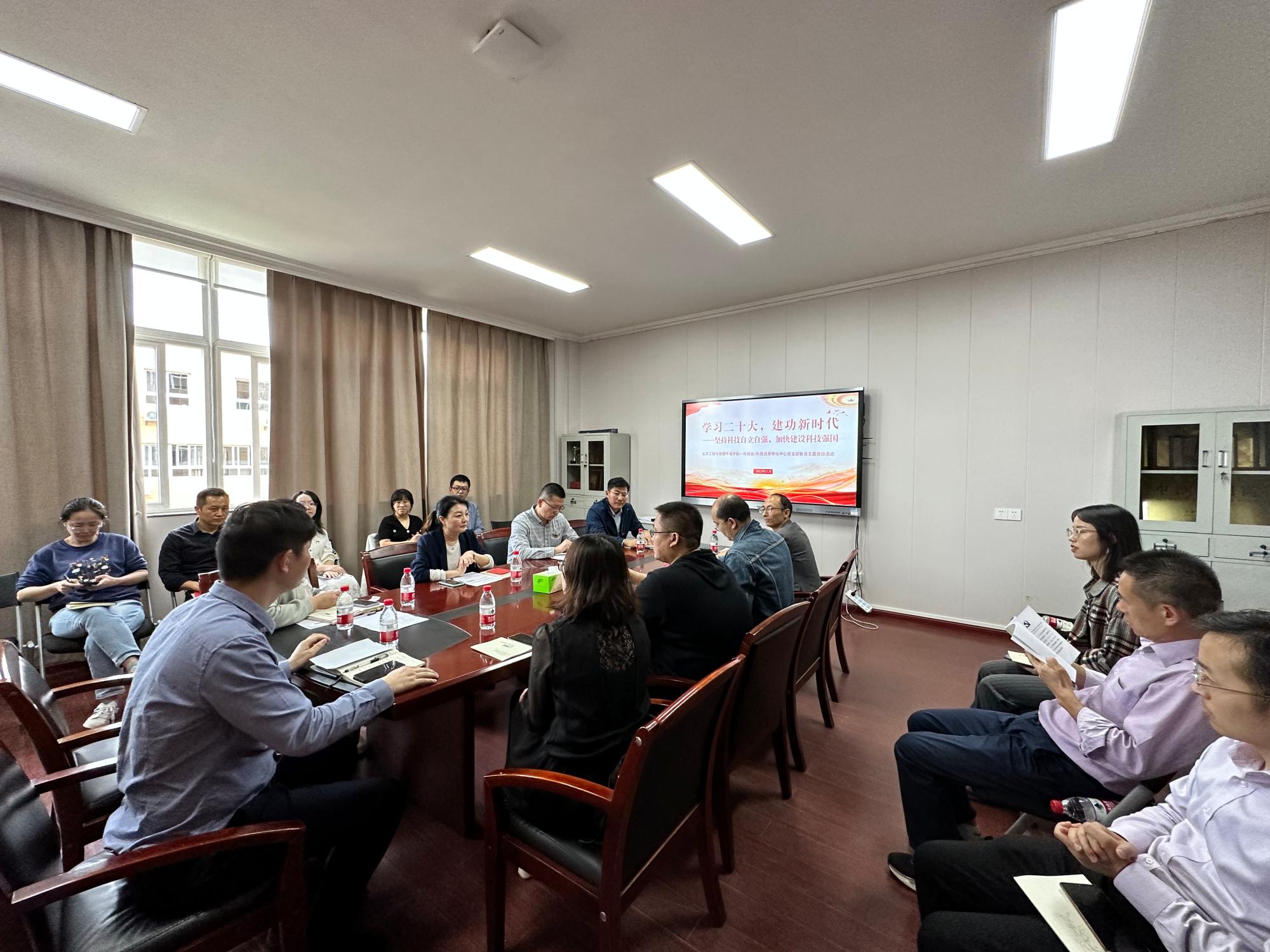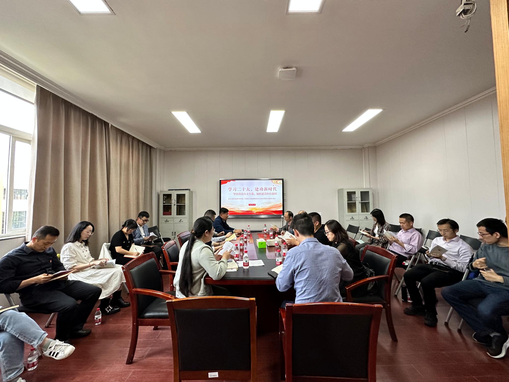 11月11日下午,土木工程与地理环境学院党委与科技成果转化中心党支部联合开展“学习二十大,建功新时代——坚持科技自立自强,加快建设科技强国”主题党日活动,科技处/科技成果转化中心党支部党员代表、土环学院部分教师党员代表参加了此次活动,会议由土环学院党委副书记、纪委书记朱剑琼主持。
