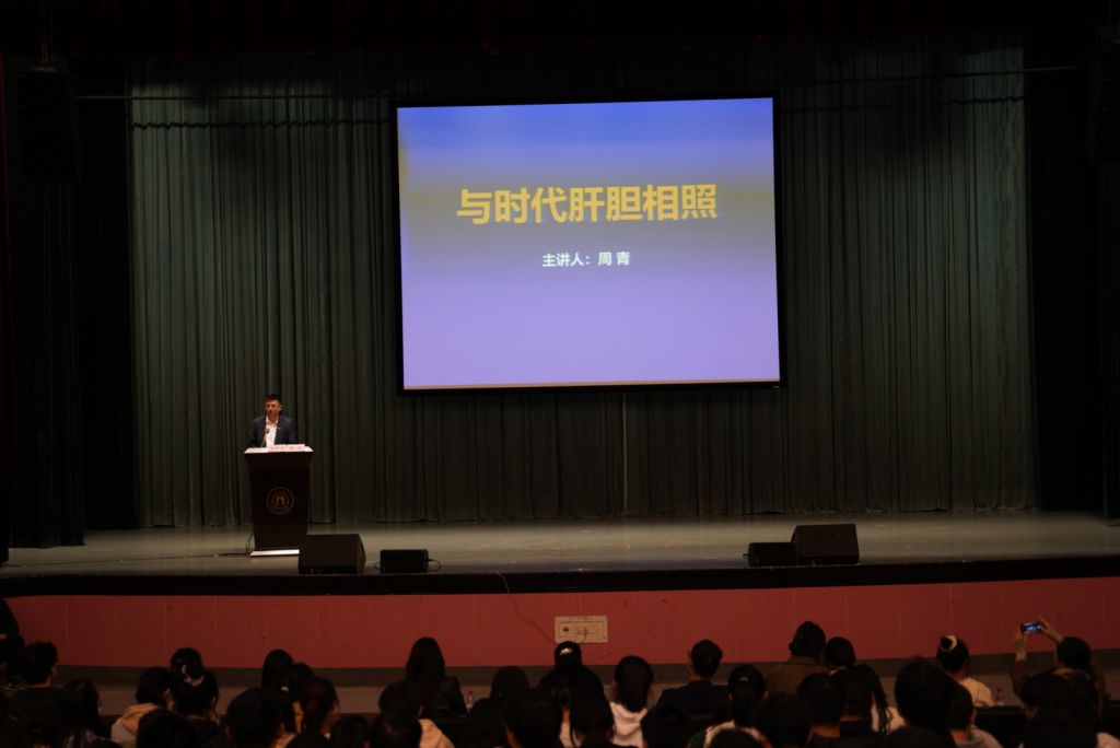 11月22日晚,校党委委员、宣传部部长周青在林杏琴会堂以《与时代肝胆相照》为主题,为蜜桃视频 、外国语学院的师生讲授了一堂事例生动、语言通俗、逻辑严谨的形势政策课。