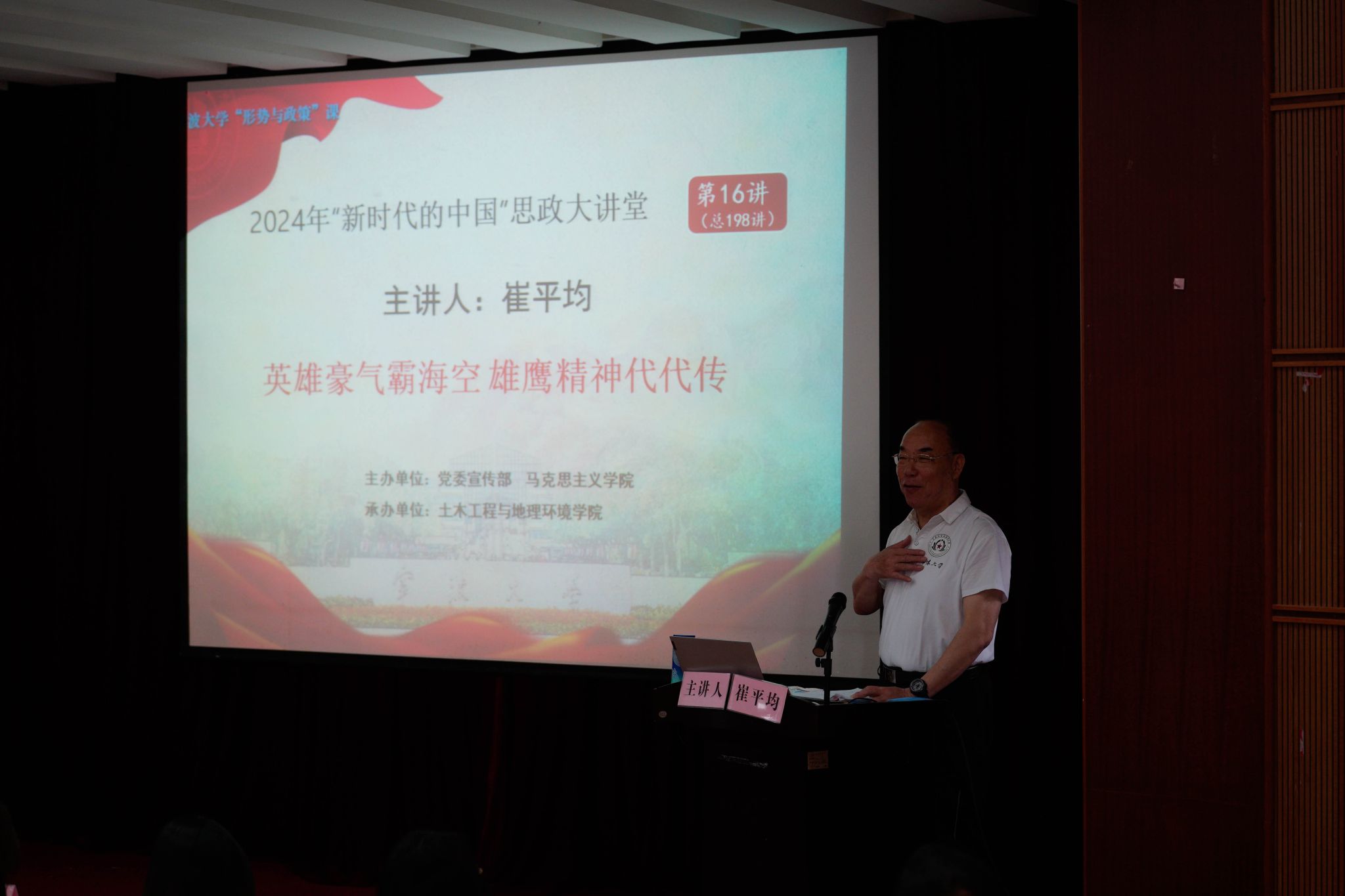 最后,崔老用习近平总书记的话与师生共勉:“一个有希望的民族不能没有英雄,一个有前途的国家不能没有先锋”。中华民族的伟大复兴,祖国统一大业的实现,需要学习英雄,呼唤英雄,涌现更多的英雄。作为新时代青年,更要赓续红色血脉,在青春的赛道上奋力奔跑!