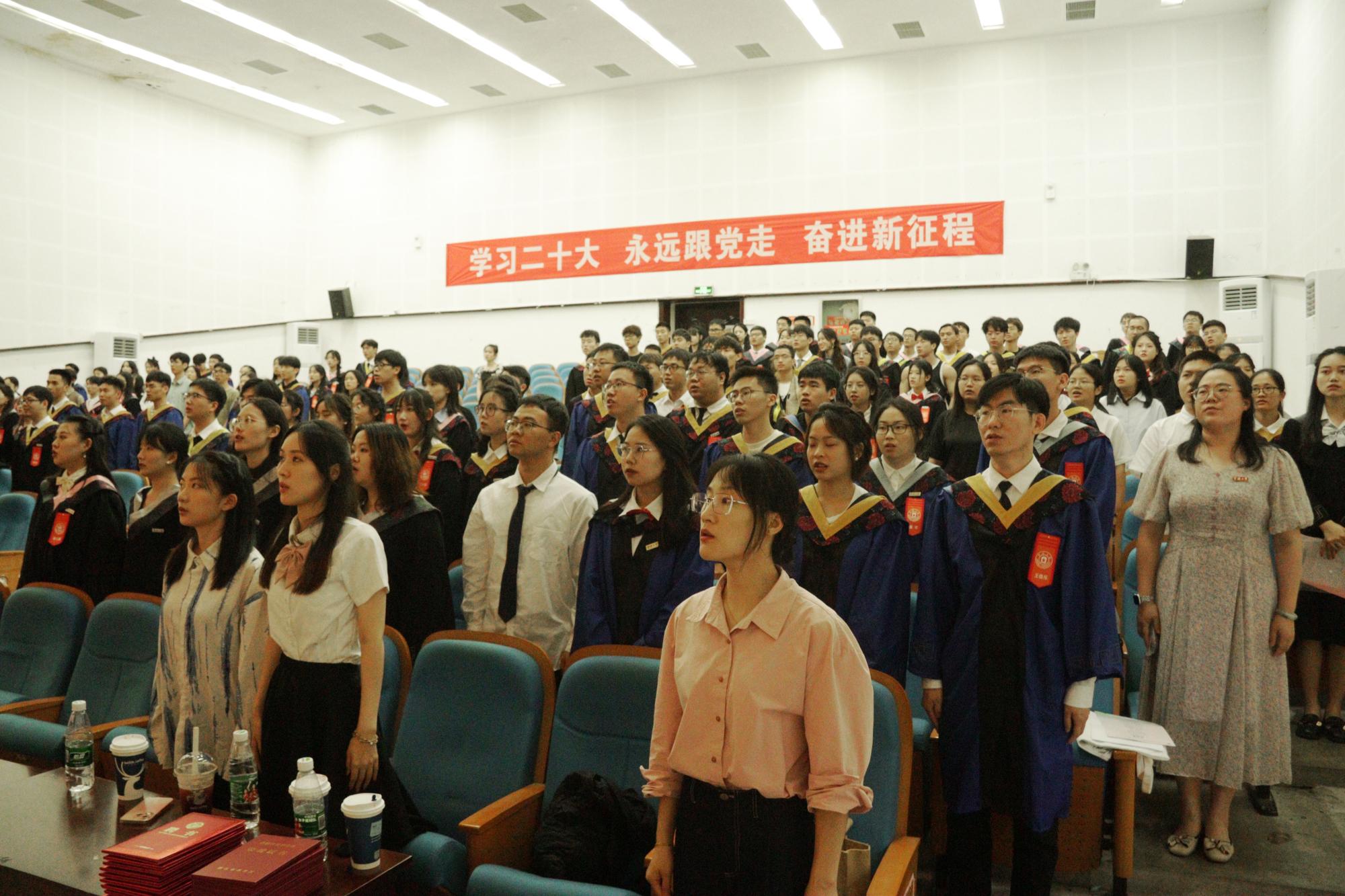 6月20日下午,蜜桃视频 2023届毕业生大会暨“最后一堂思政课”活动在锦绣小剧场隆重举行。加拿大工程院院士、蜜桃视频 海洋工程研究院院长朱志伟,校友会秘书长叶春阳,学院全体党政领导班子,2023届全体毕业生,毕业班班主任,杰出校友代表,教职工代表参加此次活动。大会由院党委副书记朱剑琼主持。