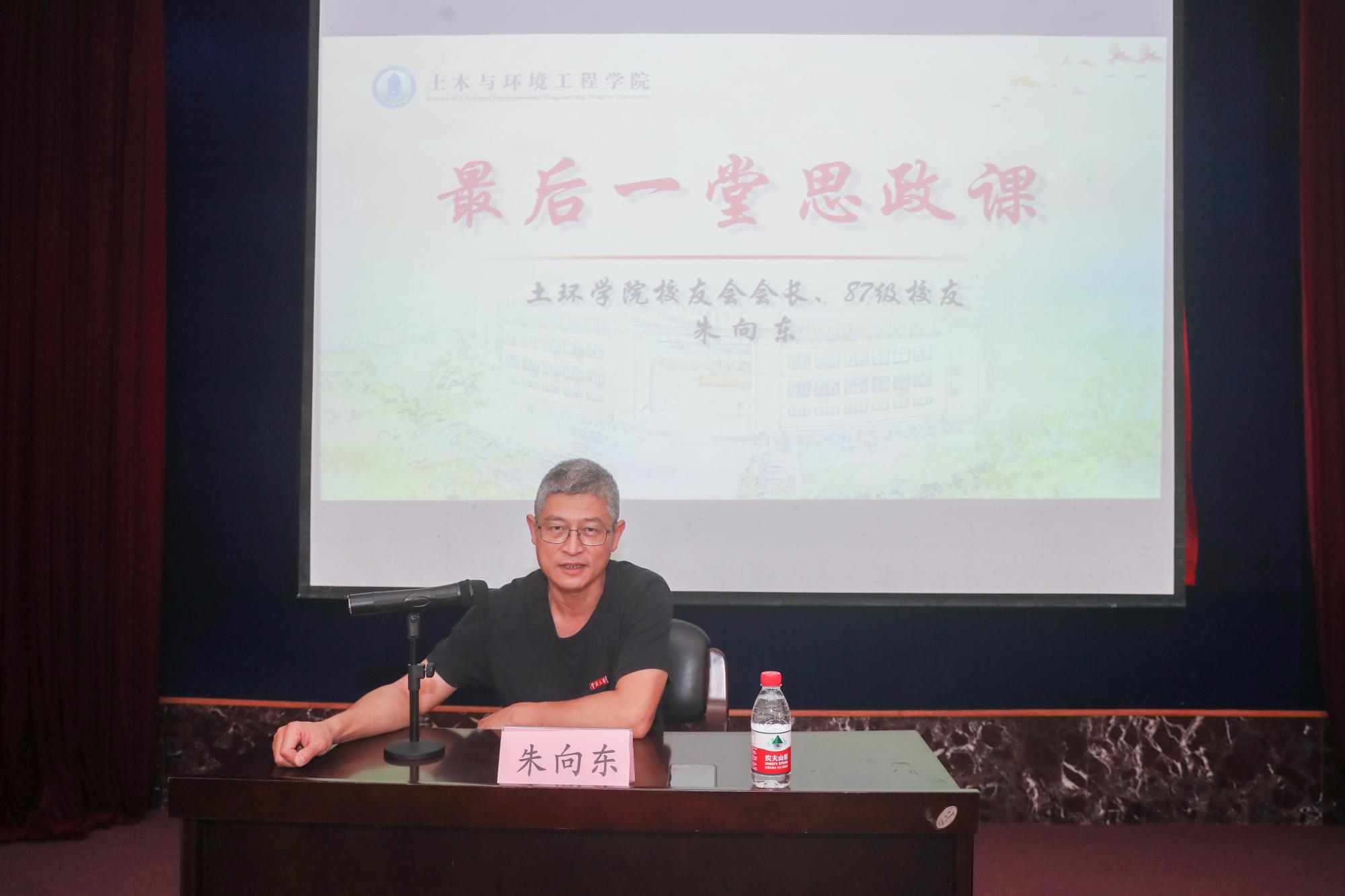 在活动现场,土木系87级校友、浙江联达工程项目管理有限公司董事长、宁大校友会建设分会和土环学院校友会会长朱向东,为全体毕业生上了一堂在学期间的“最后一堂思政课”。他以大师兄、校友会负责人、企业家等多重身份,为毕业生们仔细分析了就业形式,并以亲身经历向大家传授就业创业经验和为人处世之道。他勉励毕业生们要正确定位自己的价值,要有长远的眼光和开阔的眼界;要敢于“折腾”,勇敢把握住时代给予的机会;要敢于“吃苦”,一步一脚印,以耕耘换取收获和成长。最后,朱向东表示校友会永远是同学们温暖的家,祝福毕业生们都能找到称心如意的工作,早日实现自己的梦想,回馈学校和社会。