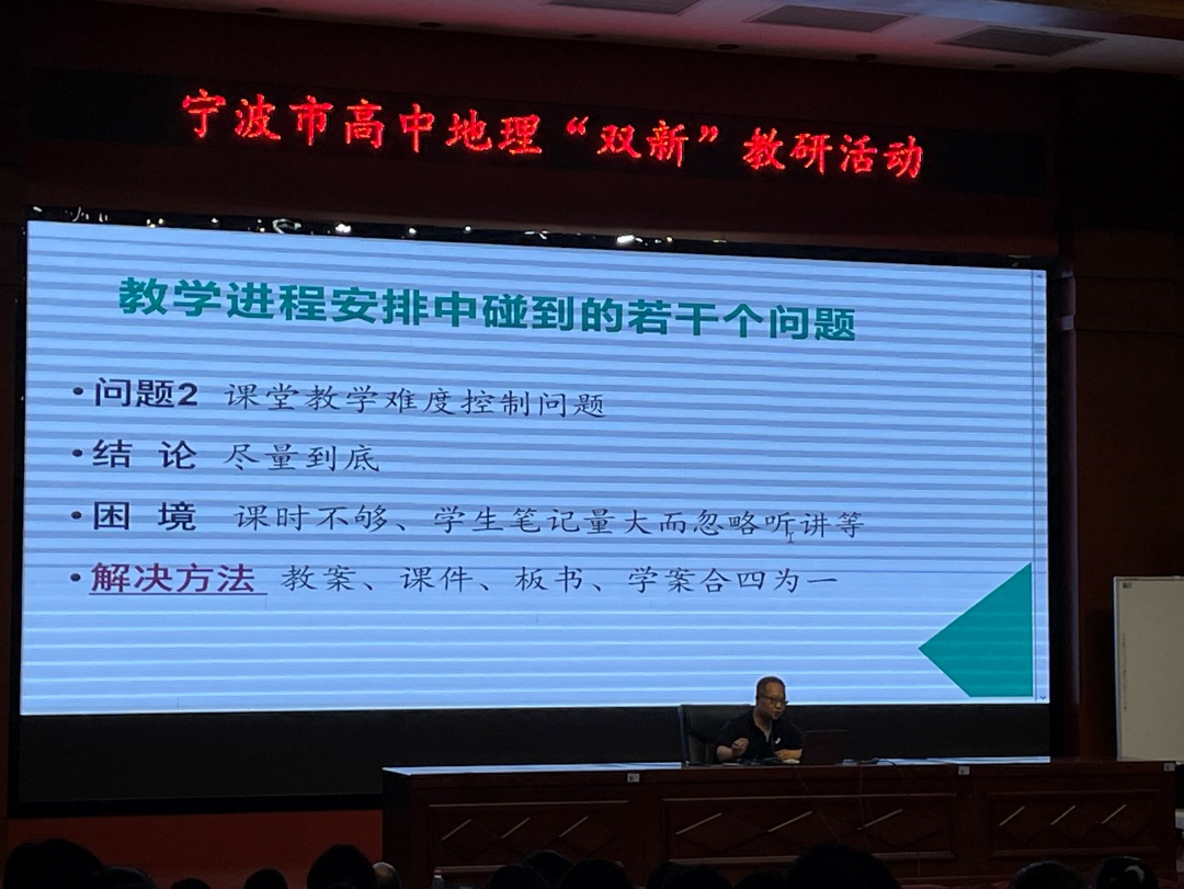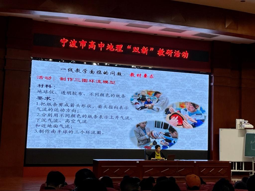 本次教研活动主要探讨人教版高中地理新教材实施过程中存在的各类疑难问题。活动分为两部分,上午为公开授课与评课议课,下午为教研主题讲座,宁波市教研员郑宇醒老师全程主持,并对本次教研活动进行了点评和总结。
