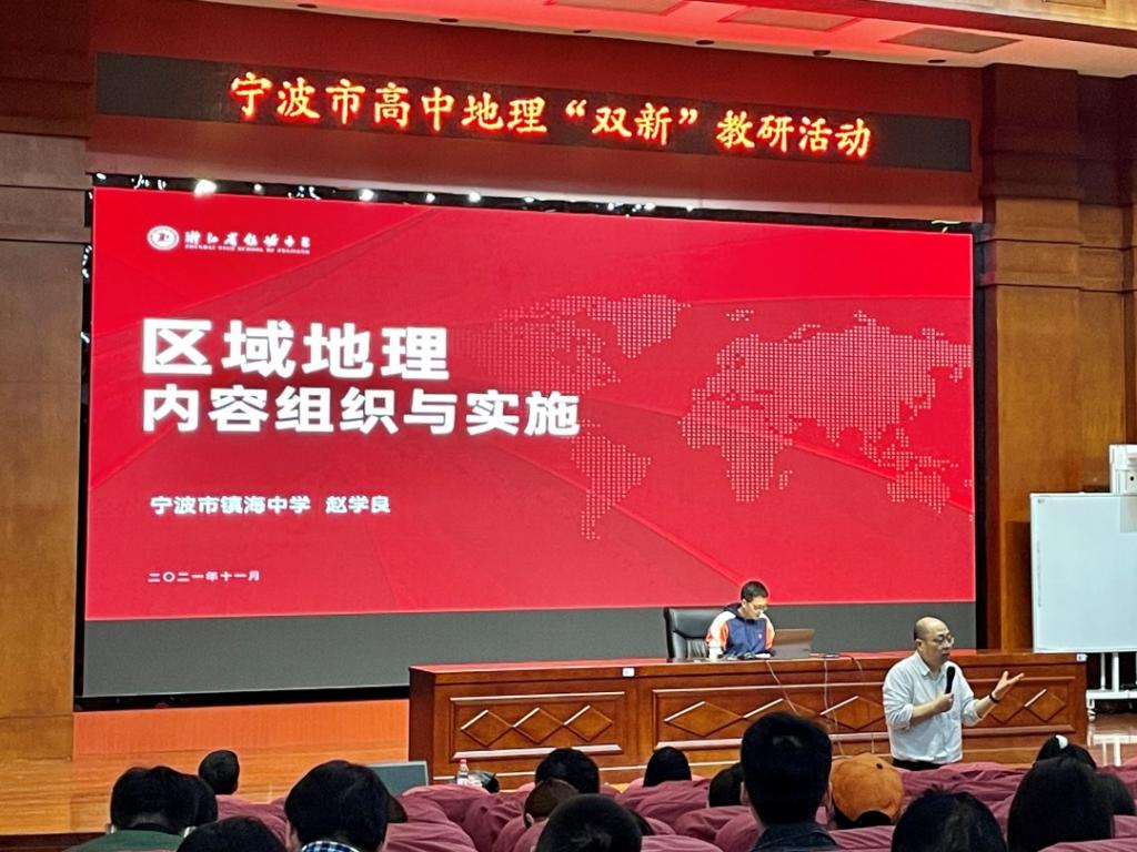下午,象山中学张杏芬老师、马谷峰老师,宁波中学王俊老师和镇海中学赵学良老师分别分享了在“双新”背景下地理教学活动所做的探索,为与会的老师和宁大师生呈现了精彩纷呈的教研培训内容。