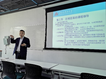 为例,引入中学地理校本教材设计的主题。然后,俞老师为同学们讲解了在校本课程开发和设计过程中领导与管理的知识,以及学校和区域两个层面上校长、副校长、教育局及其下属教研室和教研员发挥的领导作用。最后,俞老师解读了校本课程实施和管理过程中应注意的问题,并鼓励学生未来在工作岗位上培养开发校本课程的意识,做好教师生涯职业规划。
