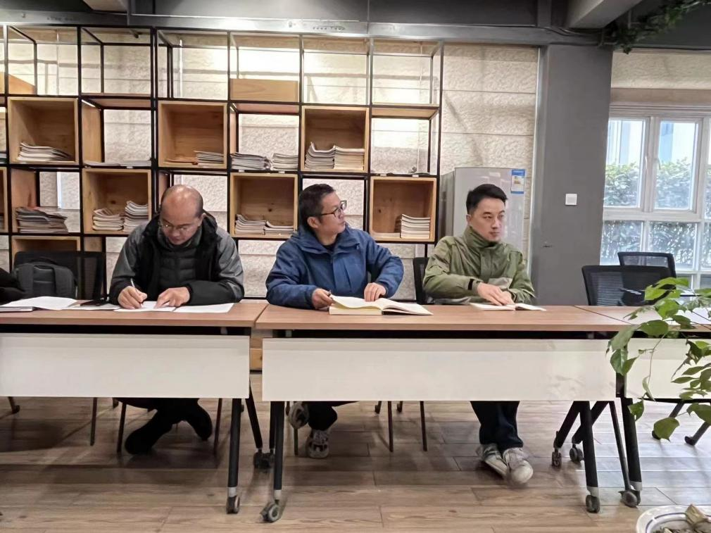 马仁锋教授(左)、骆海军老师(中)、江文政老师(右)对实习生汇报进行点评