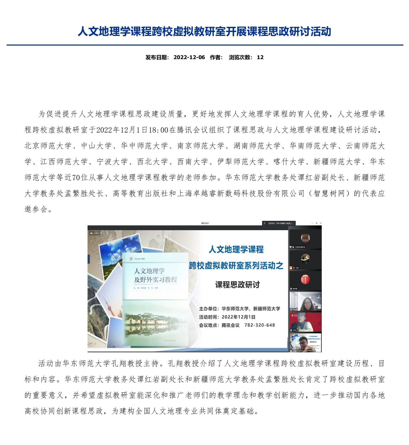 人文地理学科师资参加华东师范大学组织人文地理学课程跨校虚拟教研室建设研讨活动