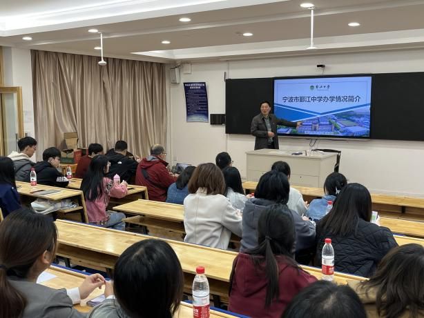 2024年4月7日上午,李加林老师、马仁锋老师和徐皓老师带领2022级地理科学(师范)专业教育见习2队和2021级部分同学进入鄞江中学开展教育见习活动。本次教育见习分为参观鄞江中学校园、了解鄞江中学校史、听课和评课四部分组成。