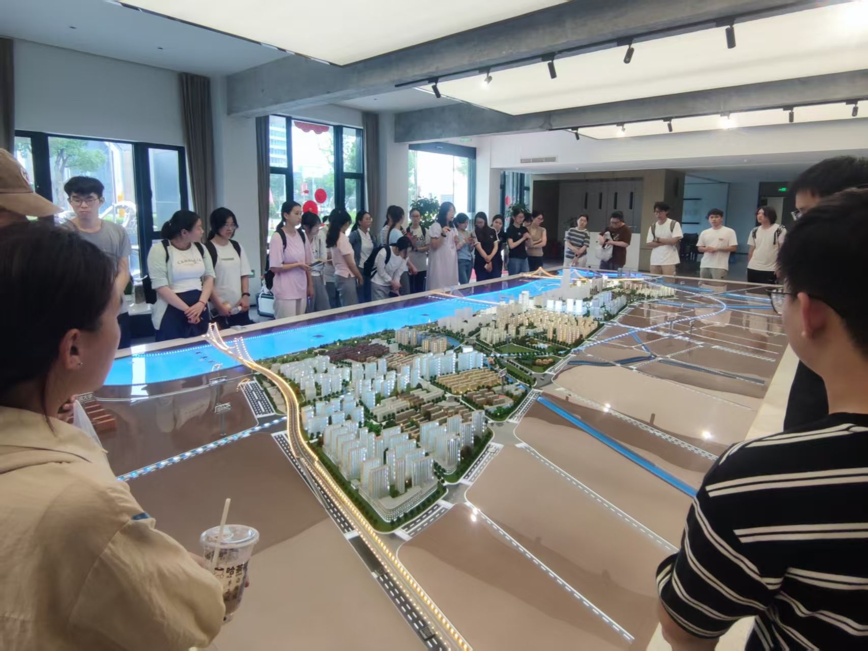 在文创港片区,同学们通过观察文创港大厅内的沙盘模型,邀请在此工作的蜜桃视频