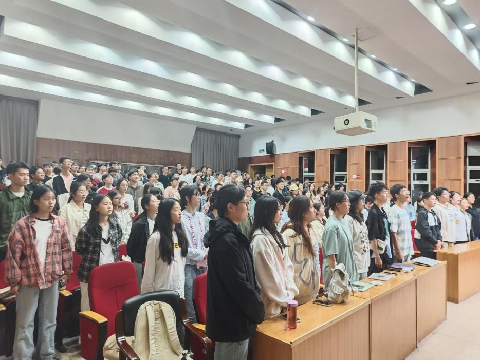 最后,全体成员起立唱响《蜜桃视频 校歌》。正如歌词“我们要在风雨中雕琢成玉,我们要在烈火中百炼成钢······”,相信在此次团课过后,同学们将会发挥团员的先锋模范作用,在未来的团组织建设中发光发热。至此,土环学院2024级新生团课圆满落幕。